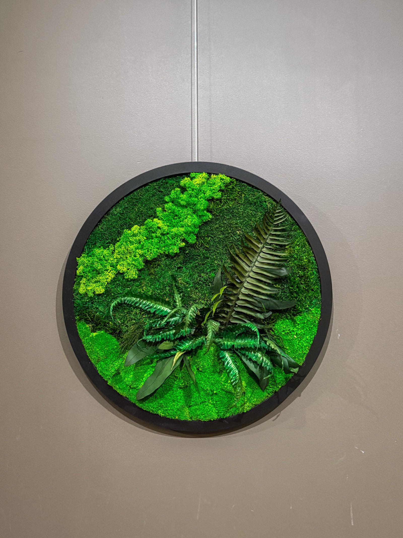 Apvalus stabilizuotų samanų paveikslas su paparčiu – ø50cm